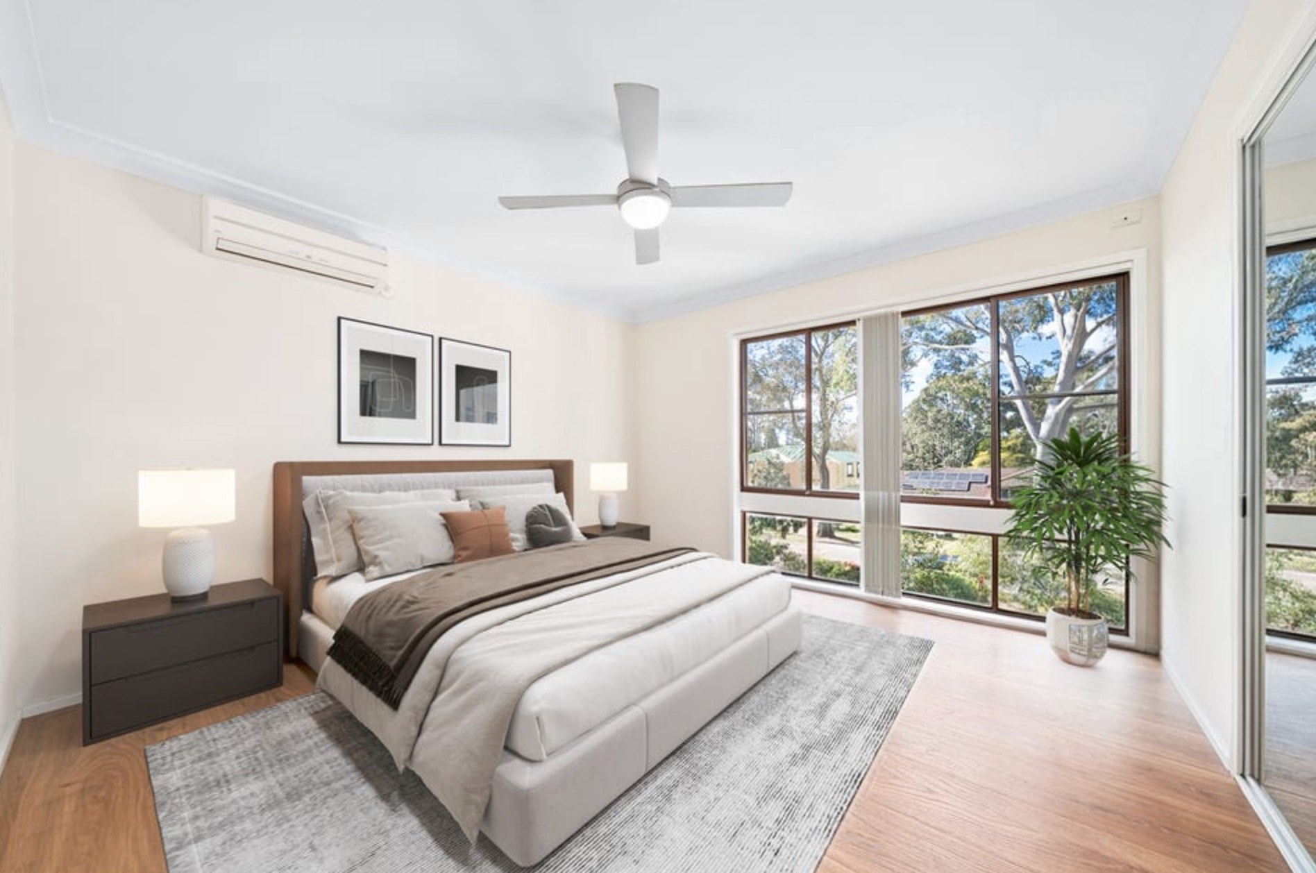 - Master suite privately positioned with large windows, built in wardrobe, split system air conditioning and stylish ensuite creating a relaxing retreat